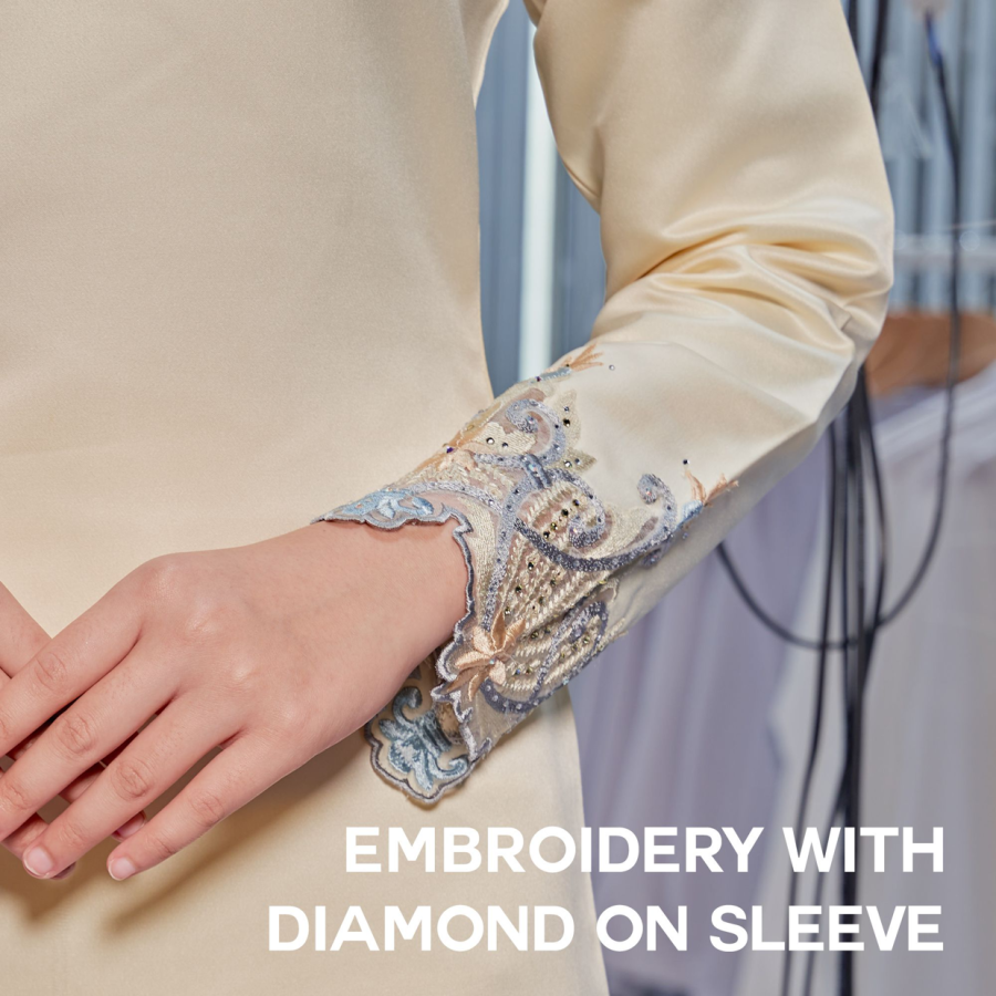 Baju kurung mini modern Emelda design menggunakan kain Dutchess Satin
